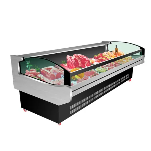 • Exhibidora de carne abierta de 250 cm con diseño profesional para mostradores refrigerados.