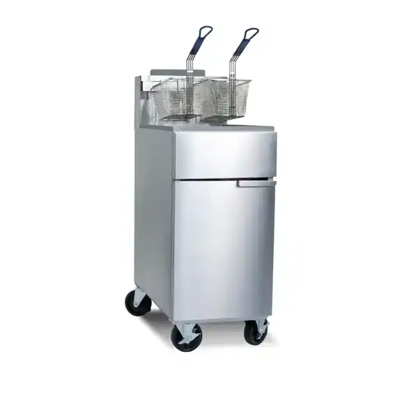 • Freidora a gas de alta capacidad, ideal para cocinas industriales, pollerías y restaurantes.