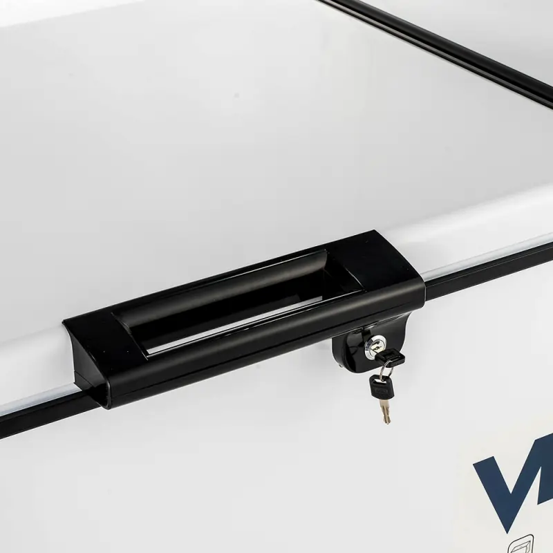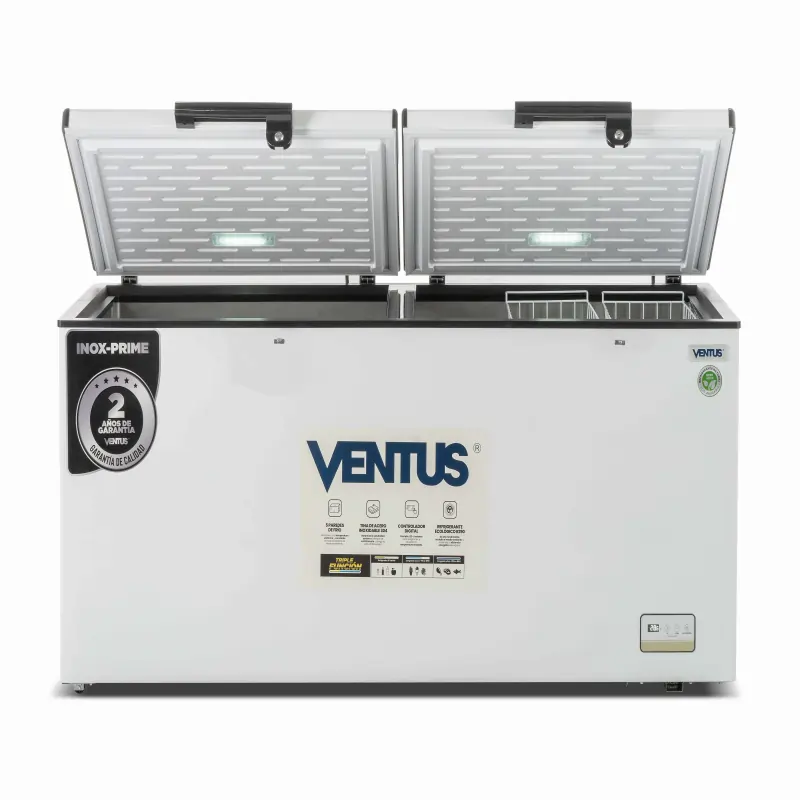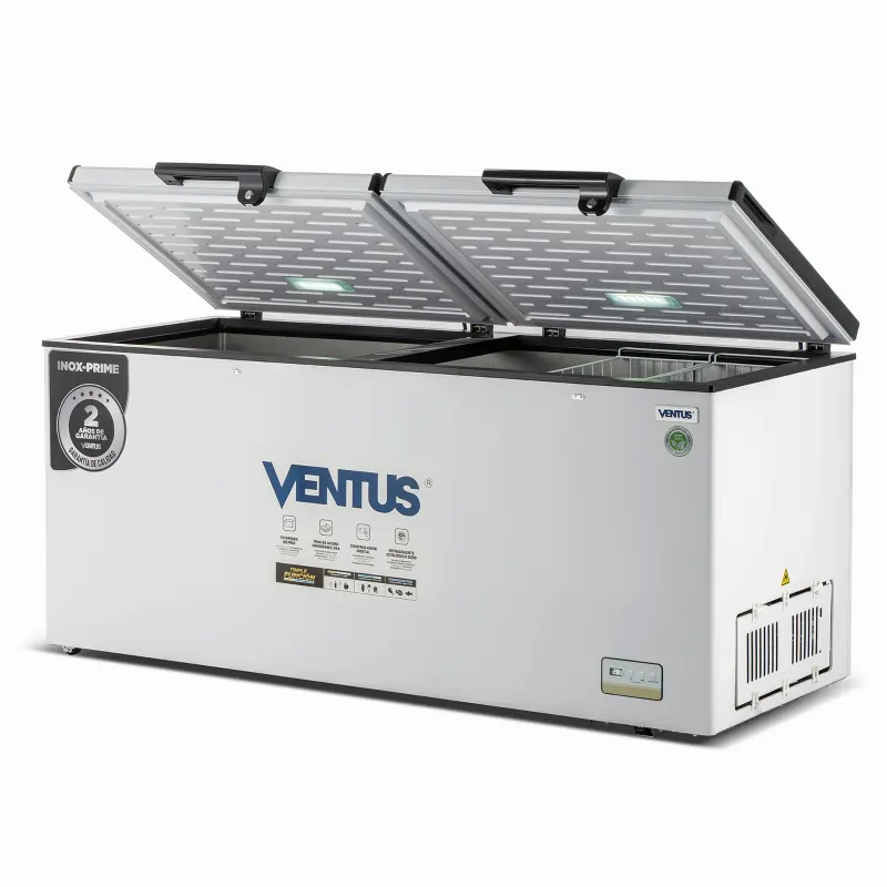 Ficha Técnica – Congeladora CTD-600 INOX Marca / Modelo BOXA / CTD-600 INOX Capacidad Bruta / Neta 600 L / 561 L Dimensiones (Al x An x F) 82.7 x 180 x 76 cm Peso neto / bruto 67 kg / 72 kg Tipo de frío Estático (5 paredes de frío) Temperatura de trabajo -30°C a 10°C Potencia / Voltaje 270 W / 220V - 60Hz Consumo energético 2.5 kWh por día Consumo en soles diarios S/ 1.63* Refrigerante R290 Termostato Digital ajustable Construcción Tina de acero inoxidable 304 Ruedas 4 ruedas unilaterales
