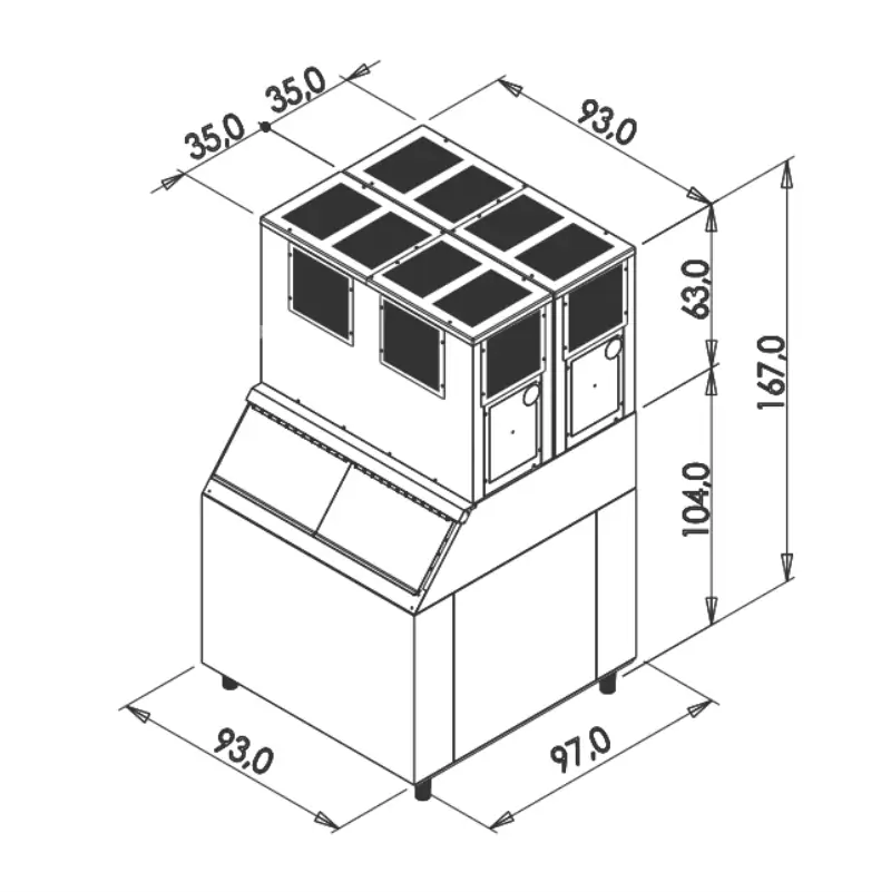 • Depósito integrado con capacidad de almacenamiento de 250 kg de hielo.